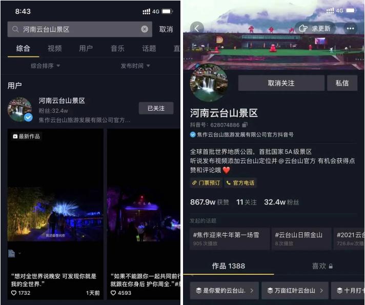 抖音搜索河南云臺山景區(qū)