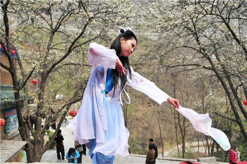 古靈山上,人們?cè)诶婊ㄆ沦p花,看梨花仙子跳舞,聽古箏演奏,乘坐高空纜車,漫步玻璃天橋,探幽靈泉妙境,體驗(yàn)涼水泉高端民宿,盡享歡樂之旅。