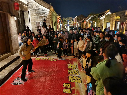 朝歌老街歷史文化街區(qū)里,經(jīng)過全新升級(jí)打造的《大商朝歌》實(shí)景演出更加驚艷,歌舞表演更加豐富,文昌閣燈光秀更加絢麗,倍受游客好評(píng)。新增的銅人表演、手鼓表演、八戒逛街、小丑巡游、非遺展演等文旅活動(dòng)亮點(diǎn)紛呈,特別是孟婆霹靂舞舞姿如行云流水、太空漫步,更是吸睛無數(shù),引得眾多游客駐足圍觀。