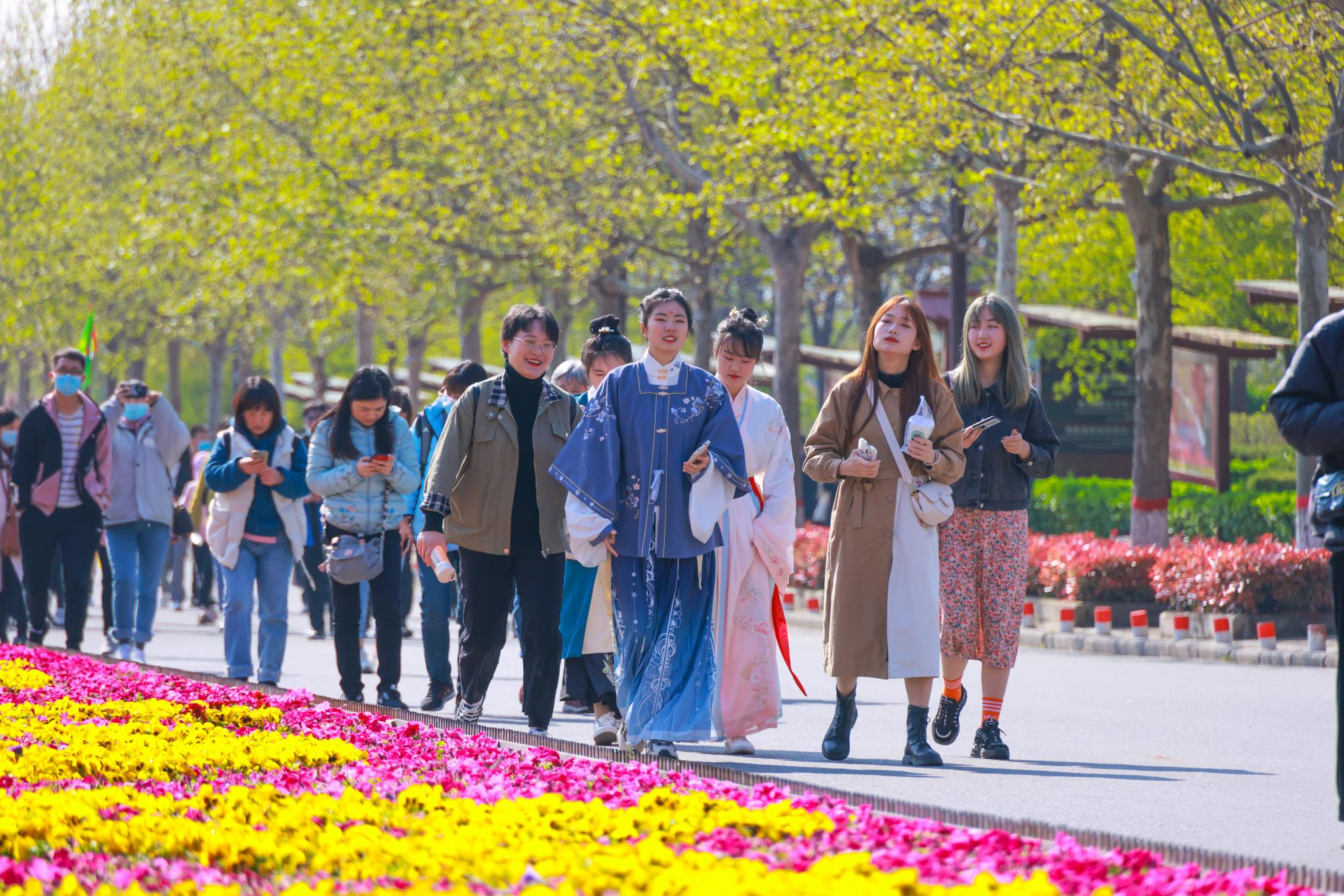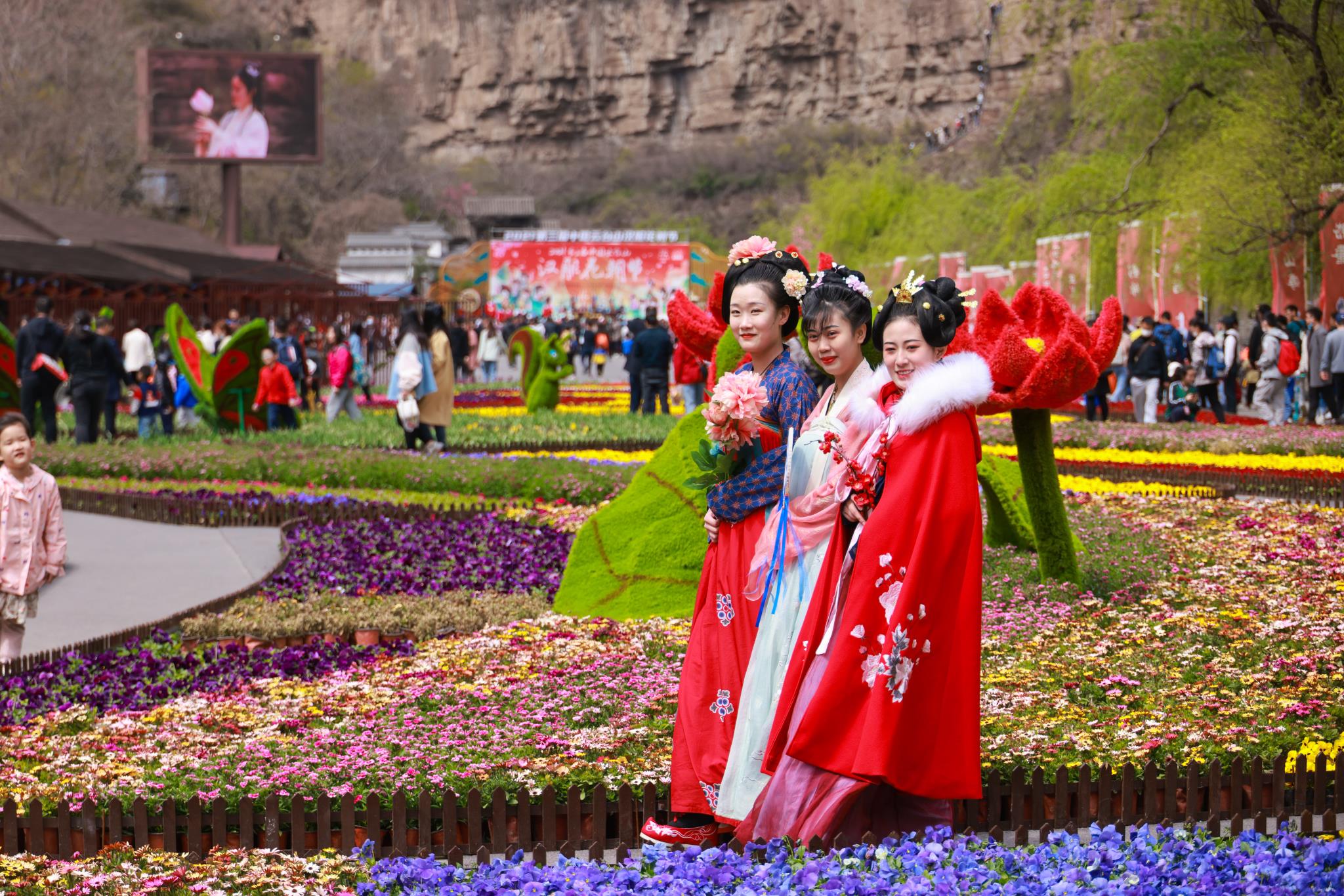 假日期間,云臺山萬畝花海、漢服盛會、漢潮之夜等一系列春日特色產(chǎn)品“組合拳”,吸引了眾多踏青賞花的游客,迎來春游熱潮,假期三天云臺山接待游客超13萬人次。同時景區(qū)舉辦的漢服花朝節(jié)也吸引了大批傳統(tǒng)文化愛好者參與活動,漢服巡游、禮樂表演、箭陣操演、傳統(tǒng)手工等一系列優(yōu)秀傳統(tǒng)文化展演,將文化之豐富、文人之儒雅、武將之雄風(fēng)充分展現(xiàn),身著不同形制傳統(tǒng)服飾的漢服愛好者徜徉于春日花海之中,與山水組成了一幅美妙的畫卷。