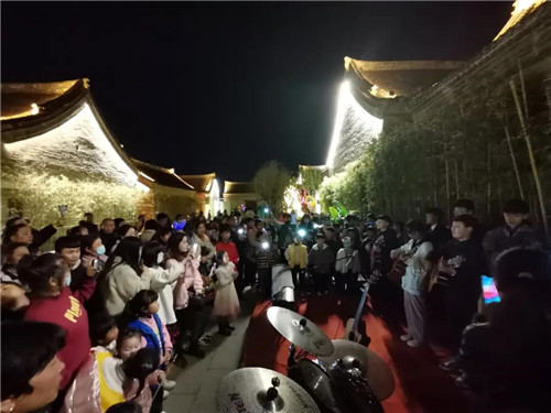 朝歌老街作為河南省首批歷史文化街區(qū),是淇縣珍貴的歷史文化遺存。假日期間,經(jīng)過全新升級打造的《大商朝歌》實景演出內(nèi)容更加豐富,燈光更加絢麗,向觀眾生動再現(xiàn)了殷紂王平定東夷、統(tǒng)一中原的輝煌歷史。同時,街區(qū)歌舞表演、網(wǎng)紅酒吧打卡、特色美食品鑒、銅人表演、手鼓表演、非遺展演、孟婆霹靂舞表演、悟空八戒巡街等文旅活動亮點紛呈,吸粉無數(shù)。