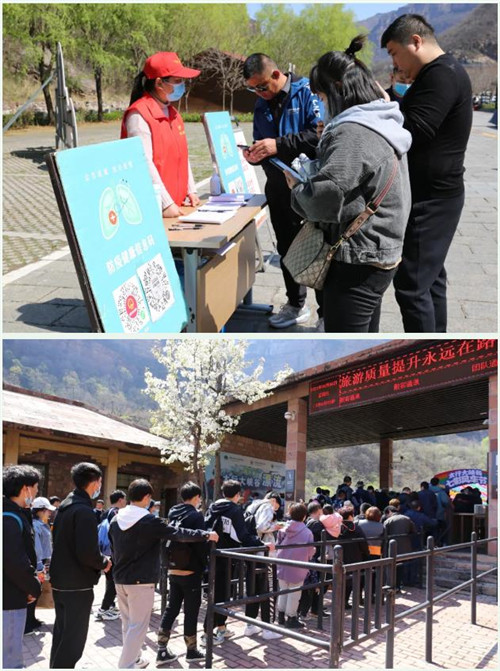 各個(gè)服務(wù)點(diǎn)雖然人頭攢動(dòng),但卻秩序井然。太行大峽谷風(fēng)景區(qū)嚴(yán)格執(zhí)行新冠疫情防控措施等有關(guān)規(guī)定,落實(shí)“測溫+亮綠碼+空間消毒”等防疫措施,加強(qiáng)對(duì)工作人員和游客的健康監(jiān)測和管理,鼓勵(lì)“無接觸”服務(wù),強(qiáng)化景區(qū)游覽管理,切實(shí)保障好游客的健康安全,平穩(wěn)有序度過清明假期。