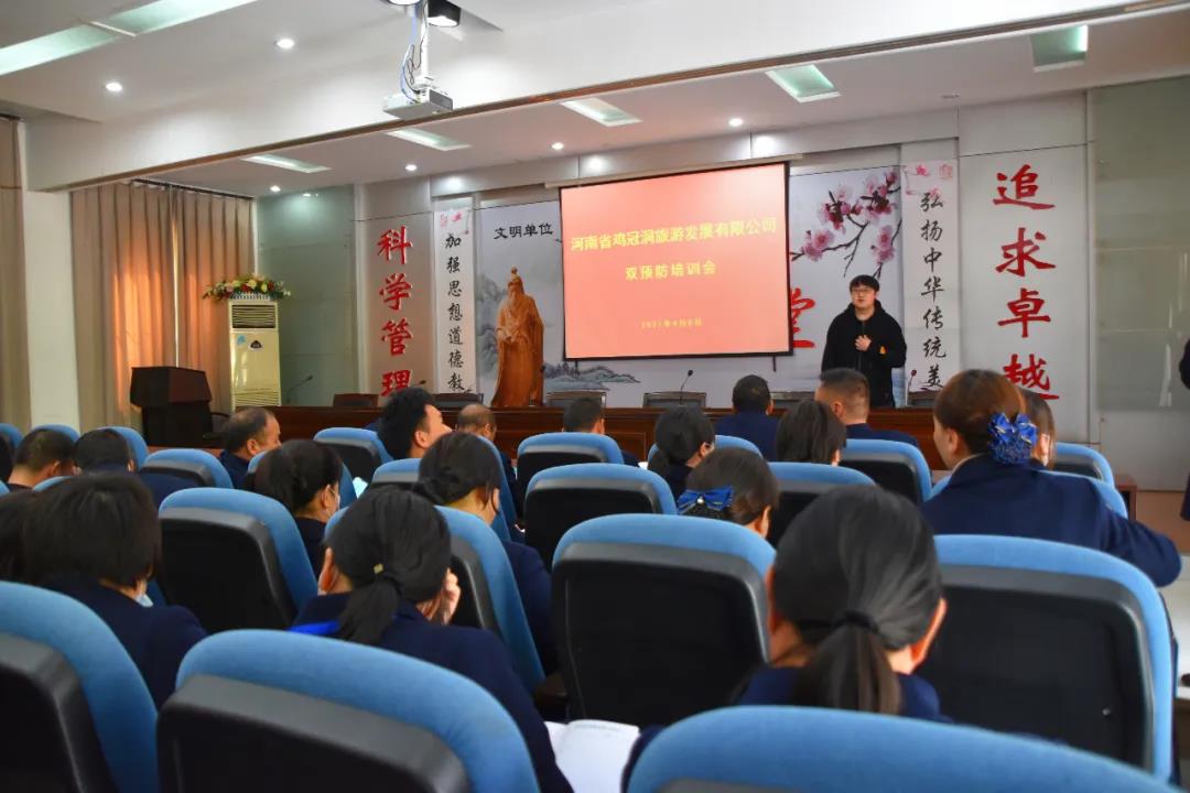 為加強(qiáng)景區(qū)安全標(biāo)準(zhǔn)化建設(shè),提高景區(qū)職工的風(fēng)險辨識、排查、評估和治理能力,4月8日,雞冠洞景區(qū)開展雙預(yù)防培訓(xùn)會。