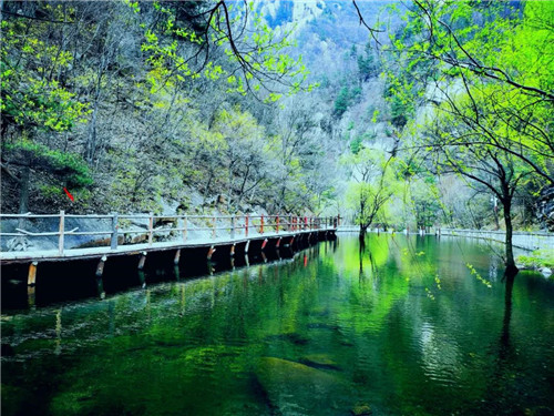 飲馬湖的湖水,則是另一種美:湖水通體碧綠,如巨大的盈秀的透明的翡翠,從湖面到湖底,全是暖暖的靜靜的濃郁的綠。陽光斜射進來,清澈見底,湖水愈發(fā)晶瑩剔透的潤綠。那濃濃的綠,溫潤寧靜而空明澄澈,給人帶來安然靜雅的快意!