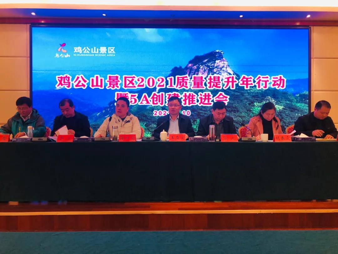 為進一步提升景區(qū)服務(wù)質(zhì)量,動員全區(qū)上下振奮精神,真抓實干,有序推進5A創(chuàng)建整改提升工作。2021年4月10日下午,在山灣大酒店召開了雞公山景區(qū)2021質(zhì)量提升年行動暨5A創(chuàng)建推進會。