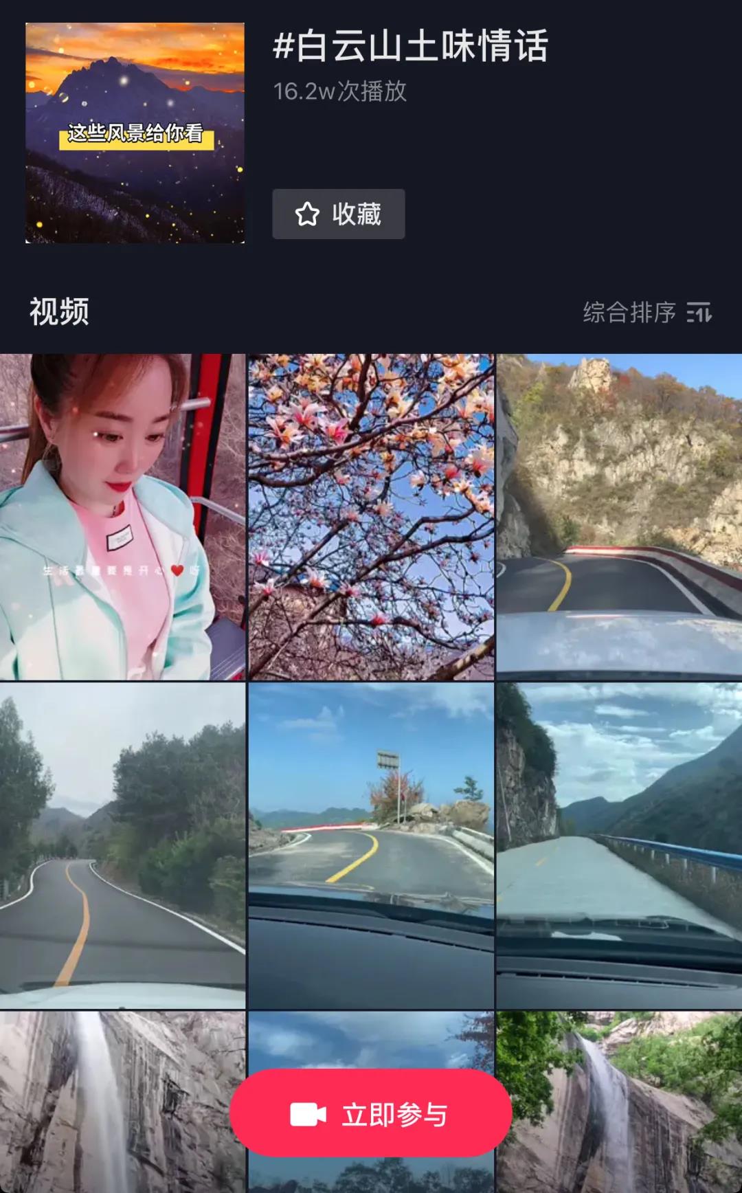 1. 抖音用戶在抖音平臺發(fā)視頻,添加#白云山土味情話#話題,并@洛陽白云山旅游度假區(qū),即可參與活動;
