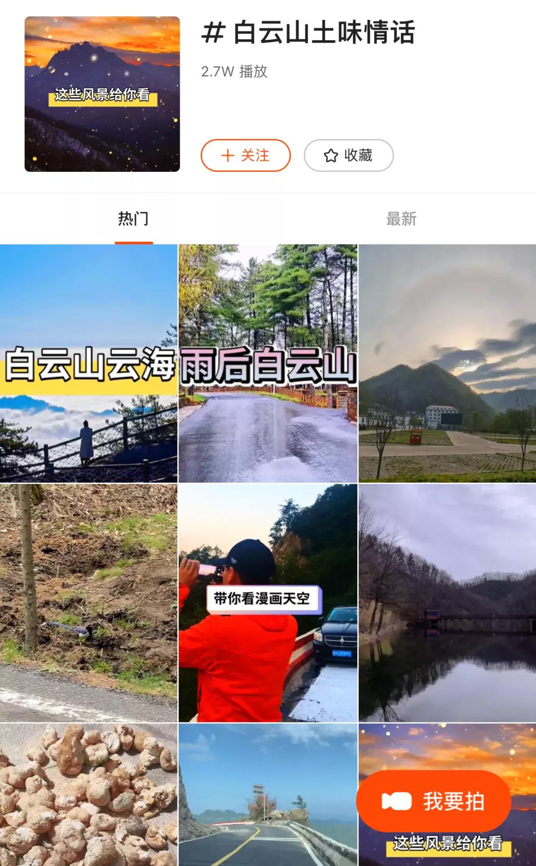 1. 快手用戶在快手平臺發(fā)視頻,添加#白云山土味情話#話題,并@洛陽白云山旅游度假區(qū),即可參與活動;