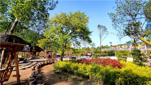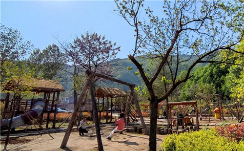 林中小屋,游玩沙池,木樁秋千……楊樹林蔭里,洋溢孩子們的歡笑,美美的享受家庭的歡樂,怎一個愜意了得!