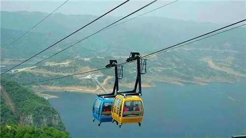 黃河三峽高空跨河索道全程將近500米,橫跨孤山和鳳凰山之間的黃河,與玻璃吊橋同向往來,但比玻璃吊橋高數(shù)十米。在索道內(nèi)俯瞰黃河三峽,頓覺江山壯麗,無比傲嬌。