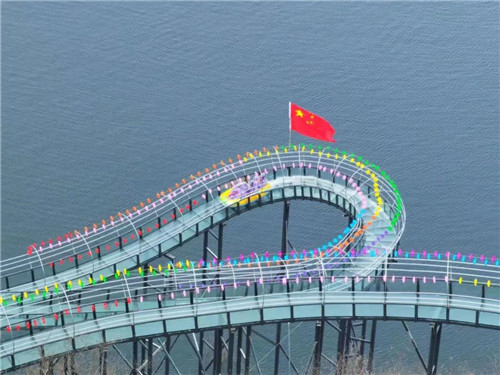 黃河三峽高空玻璃水滑道位于孤山崖壁之上,三面環(huán)水,全長1500米,落差高達160米;猶如銀龍盤繞,穿越五彩溶洞后沖入水上樂園,全程依山傍水,起伏高下,驚險刺激!