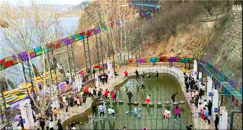黃河三峽水上游園面積1000平方米,包括各種形式的水上獨木橋、兩臺水車、喊泉、大秋千、搖椅、攀山網(wǎng)等項目,除喊泉外全部免費一年四季對游客開放。