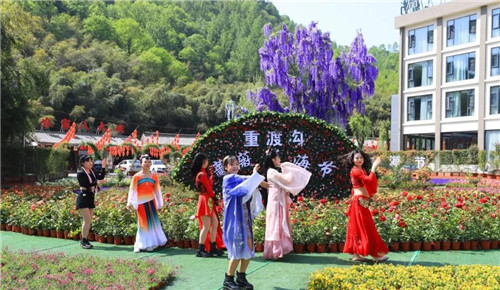 重渡溝景區(qū)的薔薇花海節(jié),五色鮮花裝扮的主會場滿目璀璨;倒垂花傘迎空而落,北國江南一派欣欣向榮;線上線下紅包不斷,你拍我送,更是誠意滿滿。