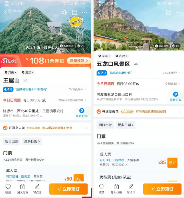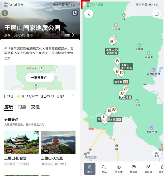 為做好疫情防控,王屋山、五龍口景區(qū)均可通過微信公眾號、美團(tuán)、攜程、高德地圖等網(wǎng)絡(luò)平臺預(yù)約購票,同時打開高德地圖APP搜索王屋山一鍵智慧游,還可及時掌握王屋山推薦線路、玩法、住宿、美食等信息,各項(xiàng)需求輕松到位,一部手機(jī)玩轉(zhuǎn)王屋山。