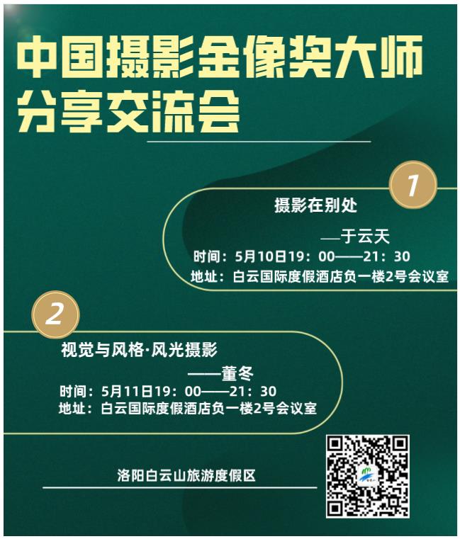 本次活動(dòng)邀請(qǐng)到劉魯豫、柳軍、于云天、李英杰、車剛、郭際、董冬、李馨曌、郭建設(shè)、鄭偉杰十位中國攝影金像獎(jiǎng)獲得者共聚白云山,走進(jìn)這里的自然山水,探訪這里的歷史人文,用鏡頭記錄“人間仙境”的美麗和神奇,5月10日、11日,于云天、董冬兩位攝影名家將在白云國際酒店與各地來白云山采風(fēng)影友開展面對(duì)面分享交流。