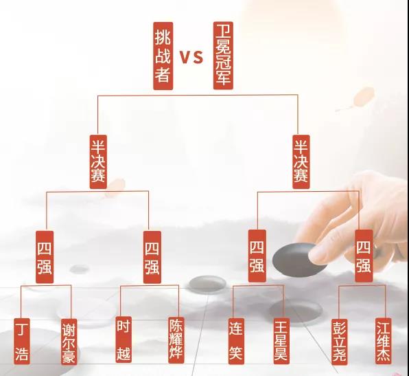 第五屆“洛陽白云山杯”中國圍棋棋圣戰(zhàn),對陣形勢為謝爾豪VS丁浩、時越VS陳耀燁、連笑VS王星昊、江維杰VS彭立堯。采用梯級上升賽制,8進4晉級制,4進2晉級制,從下至上進行,高手對決,最終決出一名挑戰(zhàn)者,突出重圍的挑戰(zhàn)者將與柯潔在白云之巔展開仙境對弈,決出新一屆的中國“棋圣”。