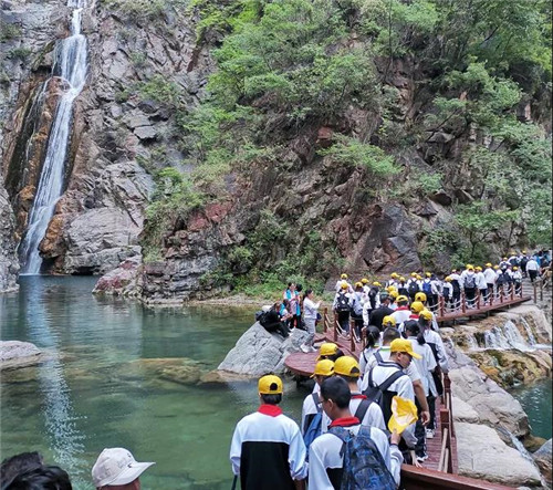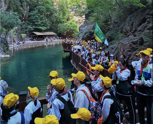 初夏時(shí)分,沐浴著清爽的夏風(fēng),千余名師生行走在寶泉大峽谷內(nèi),近距離感知自然世界。寶泉景區(qū)自然生態(tài)系統(tǒng)完善,森林資源豐富,生長(zhǎng)著無(wú)患子、紅豆杉、青檀等數(shù)十種珍稀植被資源。廣大師生在寶泉自然大課堂中,走出書本,實(shí)踐教學(xué)。