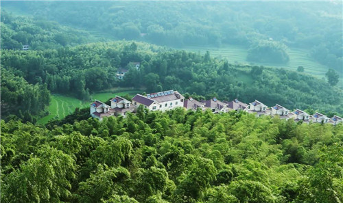 竹韻山莊掩映在萬畝翠竹之中,隨處可見的一片片竹林,掩映著西九華山的農(nóng)舍、水田,勾畫出一幅幅人間絕美的田園畫卷。