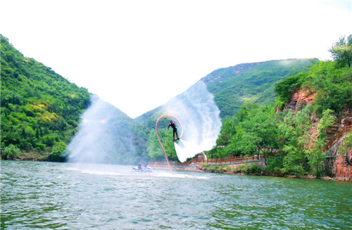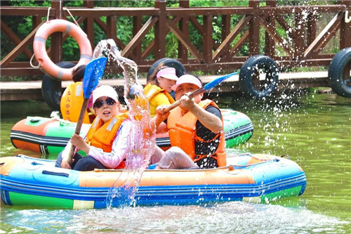 水上飛人的精彩表演,伴著在浪花中激蕩的歡聲尖叫!泛舟十里溪谷,暢游青山綠水。沒(méi)什么比嵩岳勝境里的乘風(fēng)御水更是清涼!