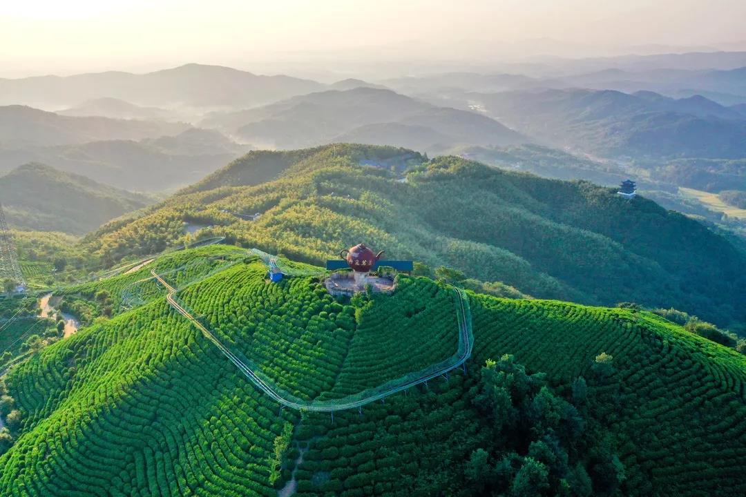 茶山滑道全長1200多米,整體落差達158米,勢如盤龍,依山就勢甚為壯觀;杏谟^光滑道上,滑行速度可自行掌握,上行代步,下行娛樂,即驚險刺激,又安全舒適。既欣賞了風景,又節(jié)省了下山的時間和體力,適合各類旅游群體游