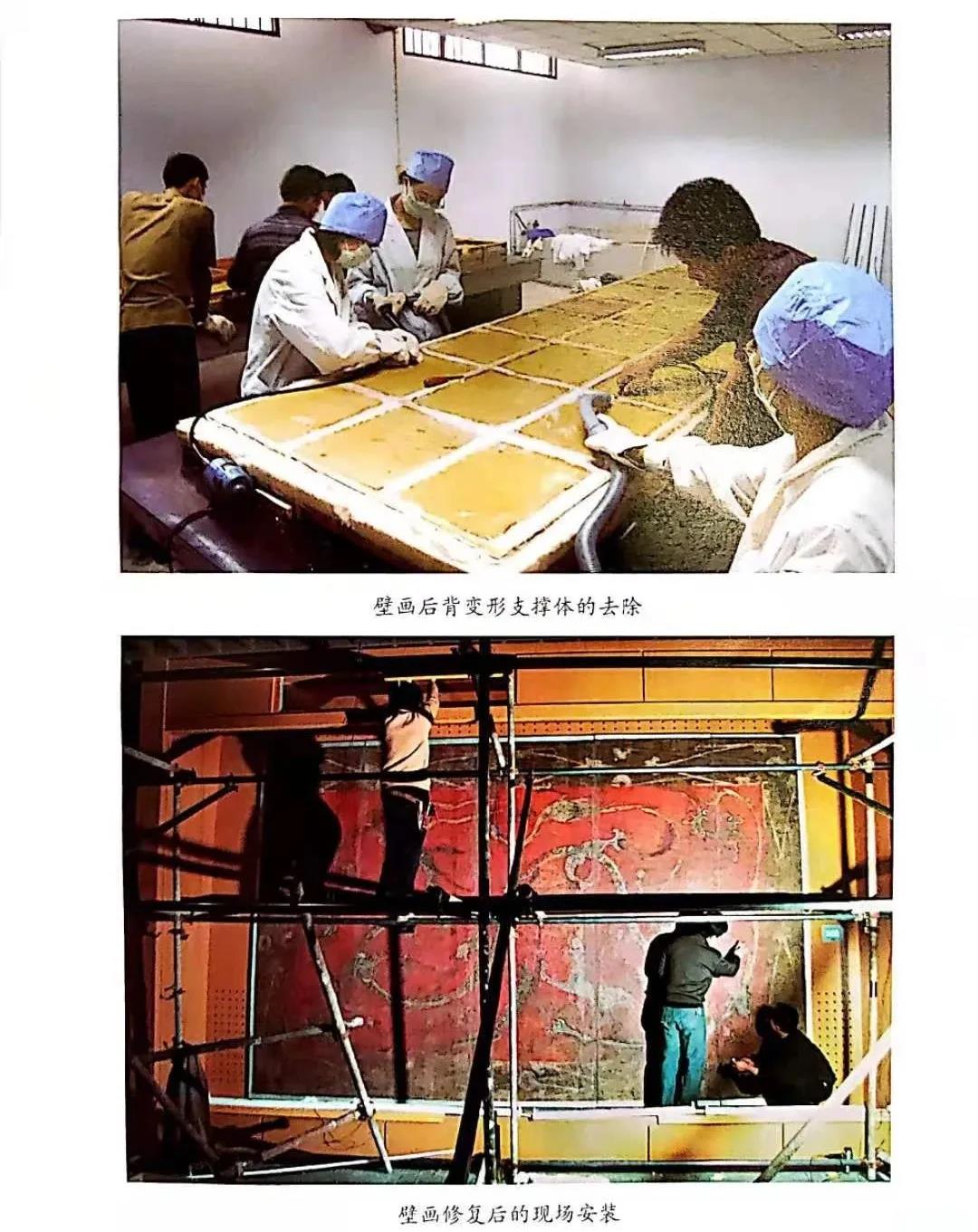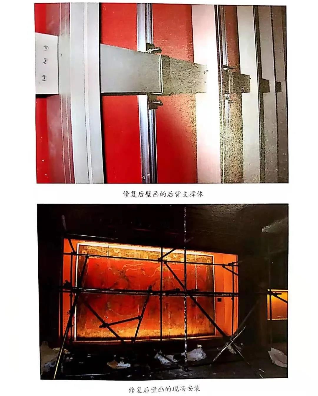 四、通過潛心研究,文物修復(fù)專家鐵付德創(chuàng)造性提出使用力學(xué)性能穩(wěn)定的蜂窩鋁板作為支撐體,采用彈性發(fā)泡材料作為過渡層,采用彈性結(jié)構(gòu)膠進(jìn)行層間膠結(jié),以實(shí)現(xiàn)四神云氣圖壁畫支撐體系的穩(wěn)定,確保壁畫的安全。