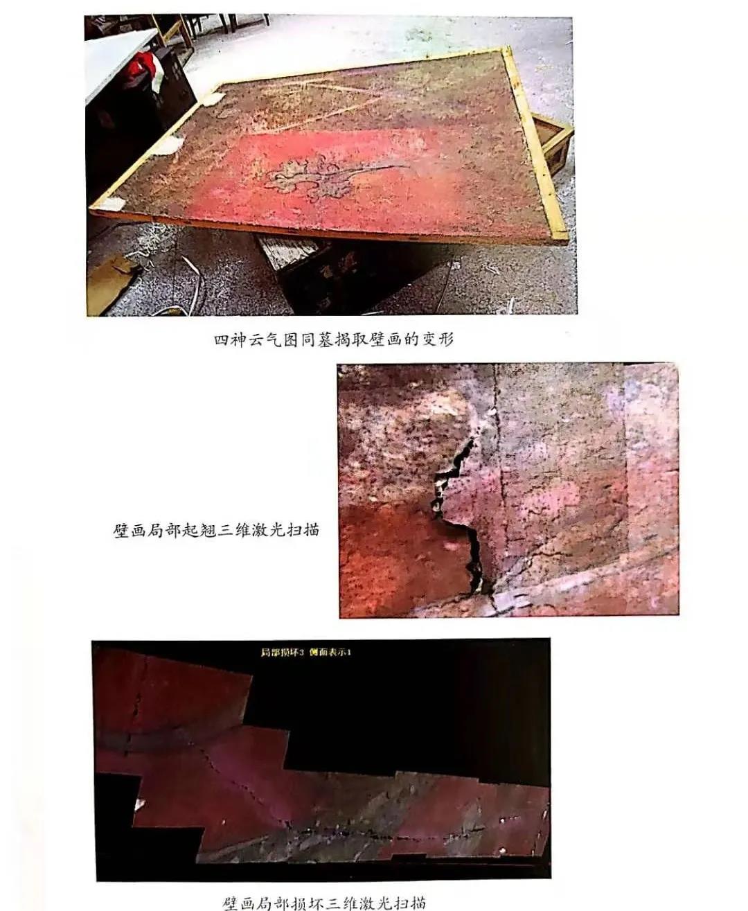 “四神云氣圖壁畫繪制于石墓墓頂,地仗層厚薄不均勻,最薄處只有2-3毫米,壁畫在墓中還掛在“天上”,揭取難度可想而知。”