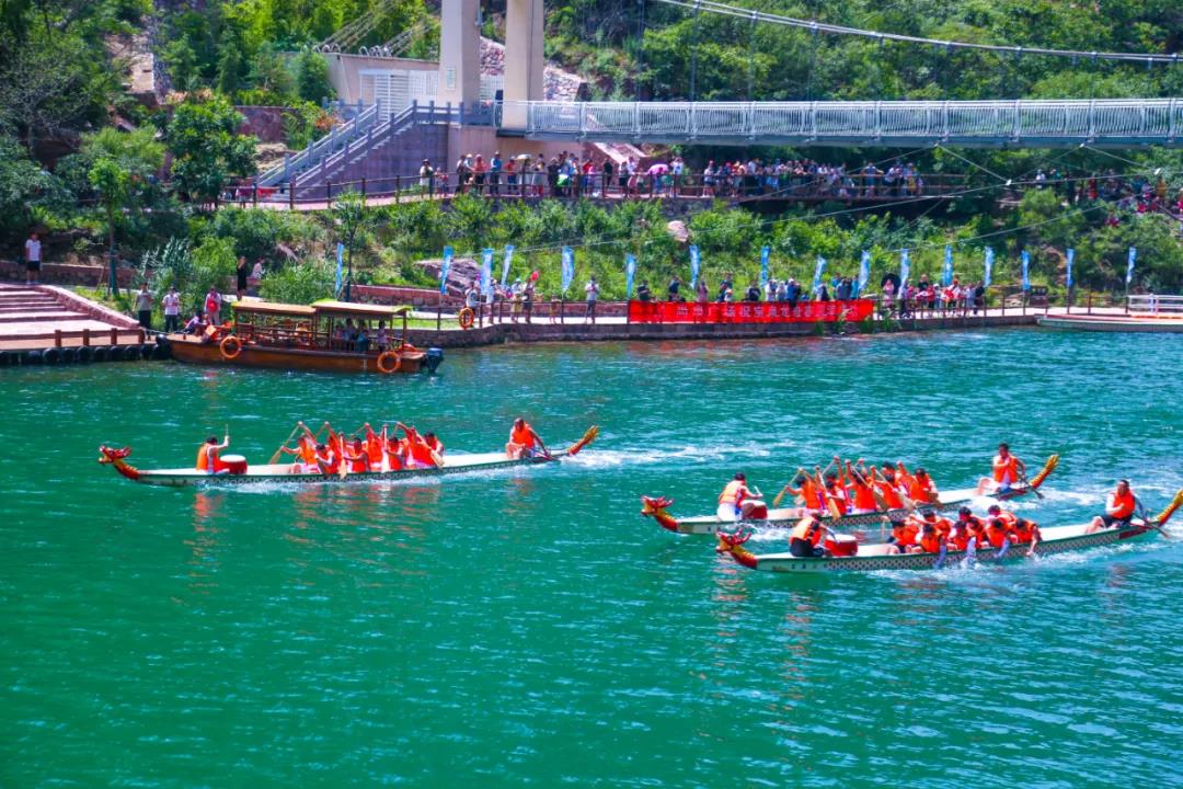高峽平湖,山行龍舟。寶泉端午龍舟賽已連續(xù)舉辦了六年,龍舟文化和端午習(xí)俗已經(jīng)成為寶泉的特色和品牌,端午到寶泉觀龍舟、品習(xí)俗,已經(jīng)成為省內(nèi)外游客的首選地和必選地,成為北方地區(qū)具有較高影響力的品牌活動(dòng),賽事規(guī)模和品牌效應(yīng)越來(lái)越強(qiáng),多次受到央視等主流媒體聚焦關(guān)注報(bào)道。