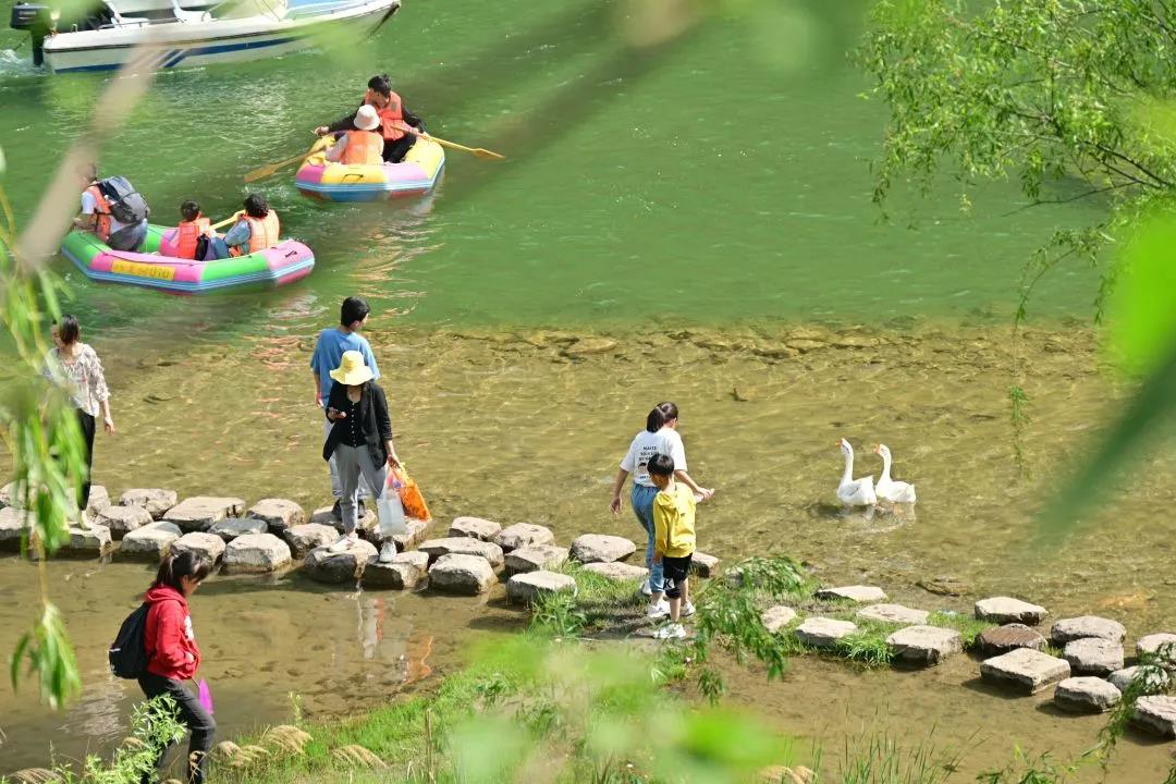 游玩的同時也可以和孩子一起回味古詩之美——客路青山外,行舟綠水前,劃著小舟在綠水之上望著兩岸的青山。