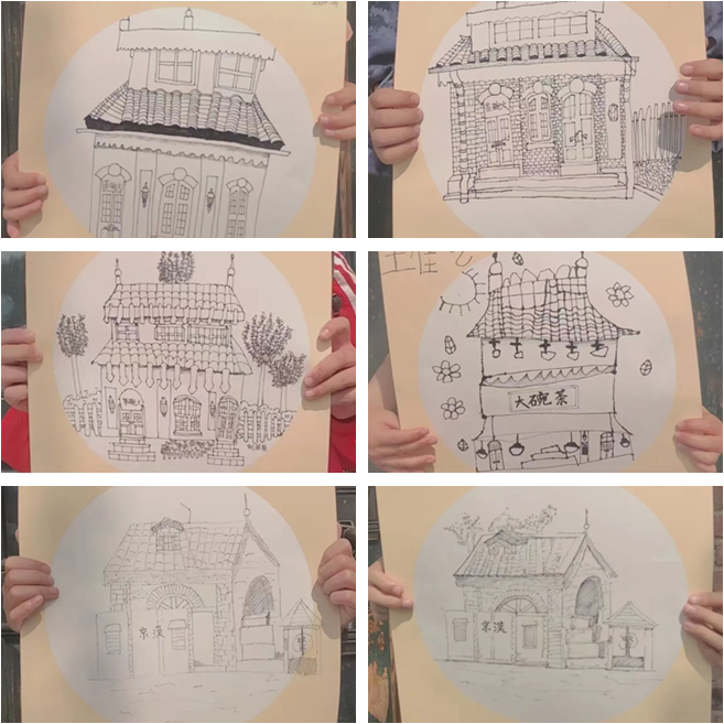 請欣賞先前小朋友在電影小鎮(zhèn)的畫作
