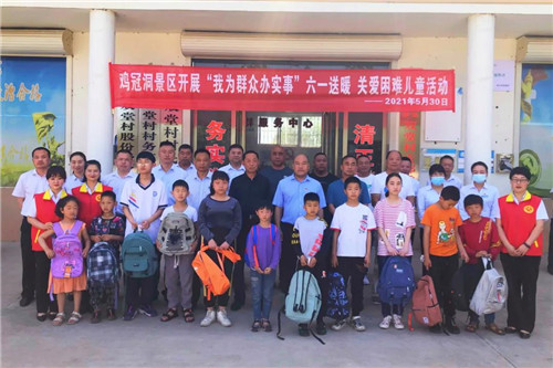 為進(jìn)一步在黨史學(xué)習(xí)教育中開(kāi)展“我為群眾辦實(shí)事”實(shí)踐活動(dòng),切實(shí)為群眾辦實(shí)事、辦好事、辦身邊事,不斷提升人民群眾的獲得感、幸福感、安全感。“六一”前夕, 雞冠洞旅游發(fā)展有限公司黨委組織公司全體黨員開(kāi)展“六一送暖、關(guān)愛(ài)困難兒童”主題活動(dòng),為貧困家庭的兒童送去節(jié)日的禮物和祝福,讓他們感受到溫暖和關(guān)愛(ài),幫助他們健康快樂(lè)成長(zhǎng)。