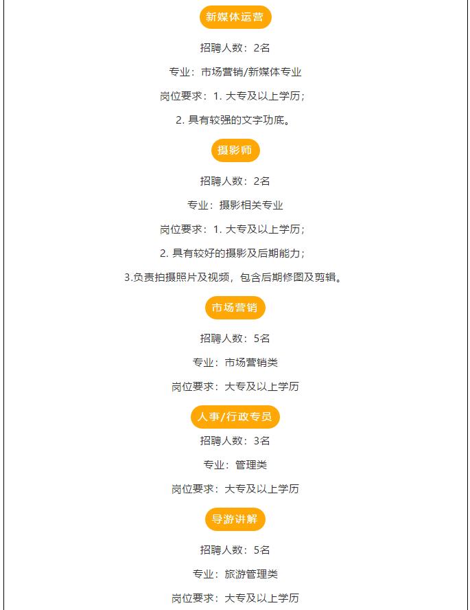 因景區(qū)發(fā)展需求,現(xiàn)面向社會(huì)招聘以下優(yōu)秀人才: