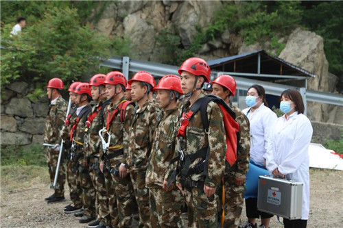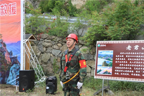 “報告指揮長,因索道突發(fā)故障,無法正常運(yùn)行,F(xiàn)有兩名游客被困于索道吊箱中,老君山索道應(yīng)急救援分隊準(zhǔn)備完畢,請求救援!”。“立刻出發(fā)!”隨著指揮長一聲令下,老君山應(yīng)急救援隊伍火速奔往事發(fā)地點(diǎn)。并由此拉開救援演練序幕。