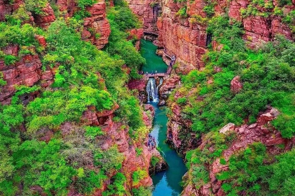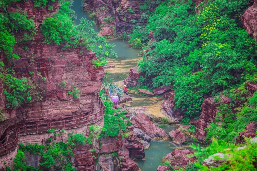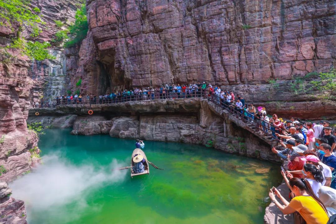 夏日的紅石峽,外曠內(nèi)幽,碧潭盈盈。深藏于地下68米的盆景峽谷,清涼宜人;谷內(nèi)遍布億萬年以上的地質(zhì)遺跡,堪稱一部渾然天成的“地質(zhì)奇書”。在秀美的云臺(tái)山水間,游客們被這里的美景所吸引,紛紛拍照留念。