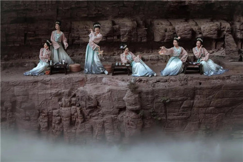 將山水與歷史結(jié)合,首創(chuàng)游園式文化演藝,云霧繚繞氤氳,幻境與夢境交疊,回眸間,仿佛夢回千年。
