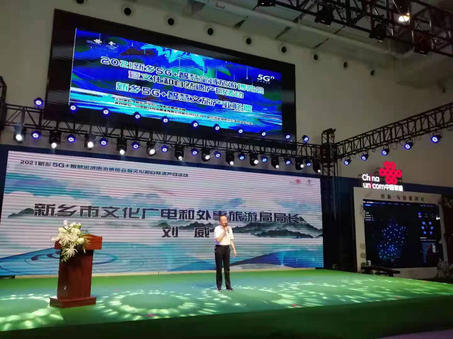 新鄉(xiāng)市文旅局局長劉威出席會議并致辭。他指出:今年6月12日是全國第6個“文化和自然遺產(chǎn)日”。5G改變社會,非遺提質(zhì)生活。更多5G技術(shù)的應(yīng)用,必將有力助推新鄉(xiāng)文旅發(fā)展。希望通過這次活動讓廣大市民了解新鄉(xiāng)的文化和自然遺產(chǎn),共同參與、關(guān)注和保護文化遺產(chǎn)。希望更多的文旅企業(yè)加入“新鄉(xiāng)5G+智慧文旅產(chǎn)業(yè)聯(lián)盟”。希望更多的企業(yè),能像新鄉(xiāng)聯(lián)通一樣,弘揚社會責(zé)任,關(guān)注支持文旅發(fā)展,匯聚各界力量,促進新鄉(xiāng)文旅提速又提質(zhì)更好地發(fā)展。
