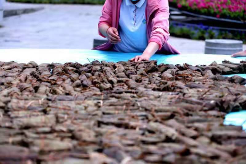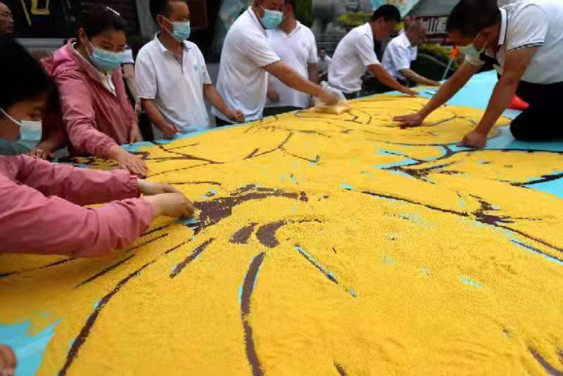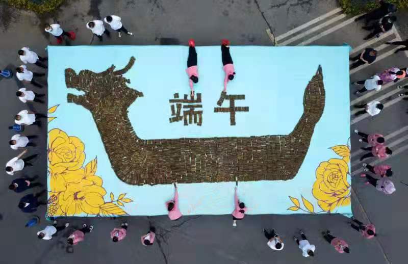 2021年6月13日,中國傳統(tǒng)節(jié)日端午節(jié)前夕,河南洛陽老君山,民眾用3000枚槲粽和小米拼成《牡丹龍舟粽》過端午佳節(jié)。據(jù)老君山辦公室工作人員趙金鴿介紹,槲粽又稱槲包,是當?shù)靥赜械姆俏镔|文化遺產(chǎn),它是由當?shù)氐拈稳~,小米,黍米,紅豆等食材制作而成,每逢端午節(jié),其他地方都是吃粽子,而欒川當?shù)厥浅蚤伟@幅《牡丹龍舟粽》畫面上的槲包是當?shù)氐奶禺a(chǎn),龍舟代表了端午賽龍舟的習俗,用槲包原材料的小米繪制牡丹則是代表著洛陽牡丹甲天下。她表示,這些槲包將全部免費贈送給四方游客,讓游客感受到洛陽欒川獨有的豫西端午文化。