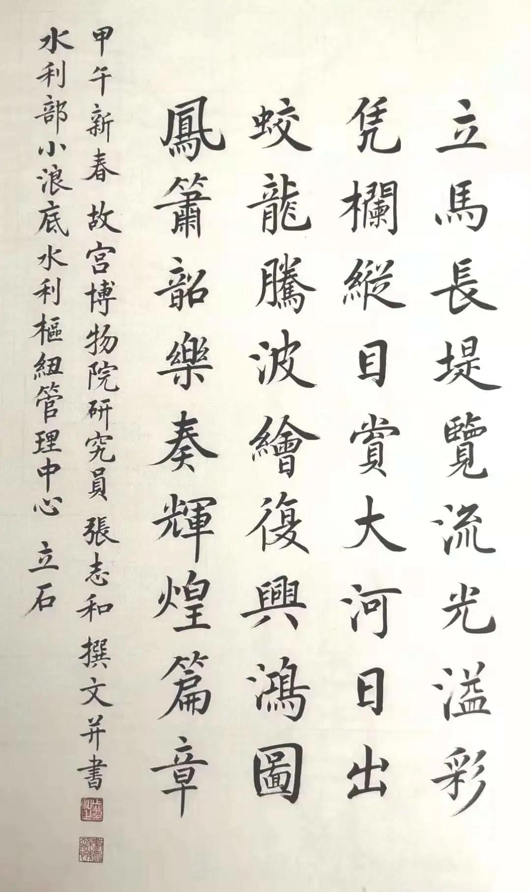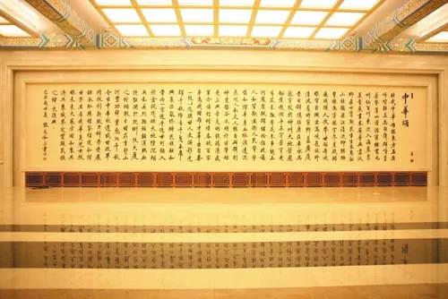 2009年所創(chuàng)作并書寫的《中華頌》是進(jìn)入國家最高殿堂——人民大會(huì)堂金色大廳的唯一幅書法巨作,該作品長18米。高3.72米!豆饷魅請(bào)》、《新華文摘》等均作過專門報(bào)道,并由中國社會(huì)科學(xué)出版社出版為《中華頌》精裝書法作品集。
