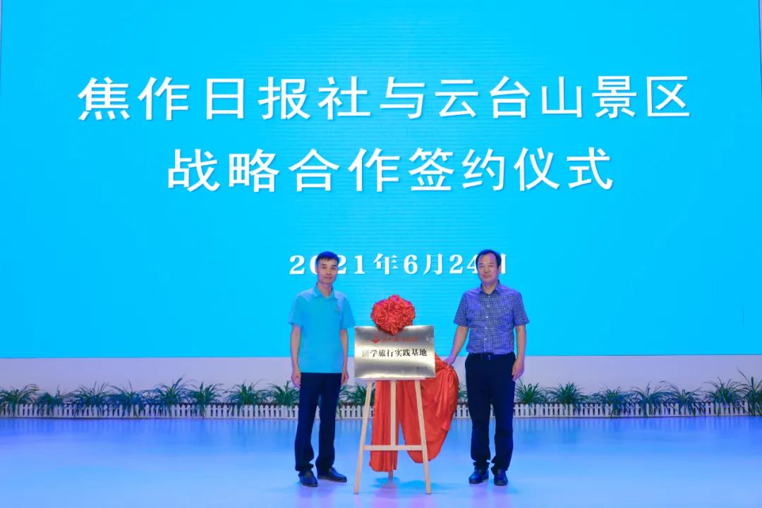 6月24日上午10時(shí),云臺(tái)山景區(qū)、焦作日?qǐng)?bào)社戰(zhàn)略合作簽署暨焦作日?qǐng)?bào)小記者研學(xué)旅行實(shí)踐基地揭牌儀式在云臺(tái)山景區(qū)成功舉行!雙方圍繞研學(xué)游開(kāi)展深度合作,實(shí)現(xiàn)資源共享,共同策劃、攜手打造研學(xué)實(shí)踐精品課程。