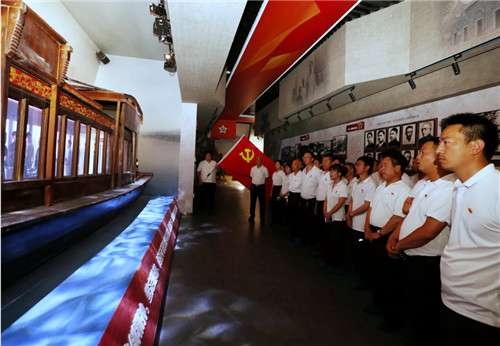參觀結(jié)束后,全體黨員在黨支部書記楊植森的帶領(lǐng)下,面向黨旗莊嚴(yán)地舉起右手,重溫入黨誓詞,用鏗鏘有力的誓言銘記先烈的感人事跡,弘揚紅船精神,牢記共產(chǎn)黨員的初心和使命。
