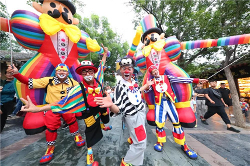 充滿異域風情的小丑在這宋風宋韻的清明上河園里,無疑是一道獨特的風景線,長鼻子、大耳朵、高蹺人……他們的出現(xiàn),只為帶給你快樂。因為在這里,快樂是永恒的主旨!