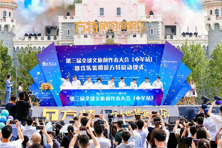 7月3日上午,第三屆全球文旅創(chuàng)作者大會(中牟站)暨歡樂暑期游方特啟動儀式在鄭州方特旅游度假區(qū)成功舉行。河南省文旅廳廳長姜繼鼎、河南省委網信辦二級巡視員趙小平、鄭州市文化廣電和旅游局局長李芳、中牟縣委書記潘開名等領導出席啟動儀式。