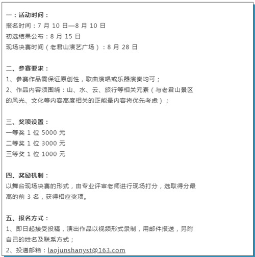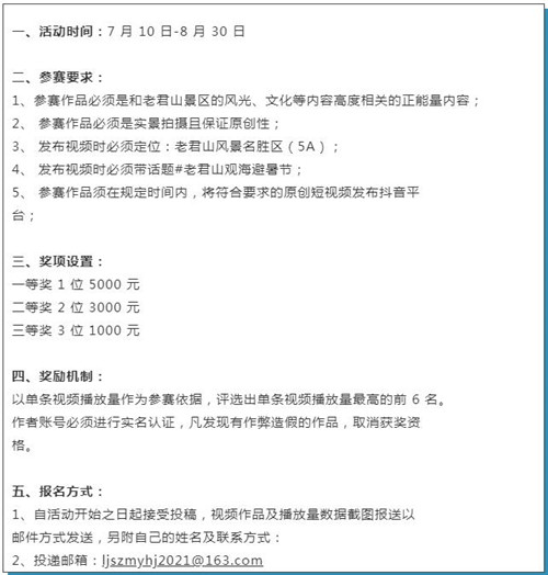 此外,本周末,老君山最美云海季短視頻大賽及云上聽原創(chuàng)音樂大賽也將正式啟動。