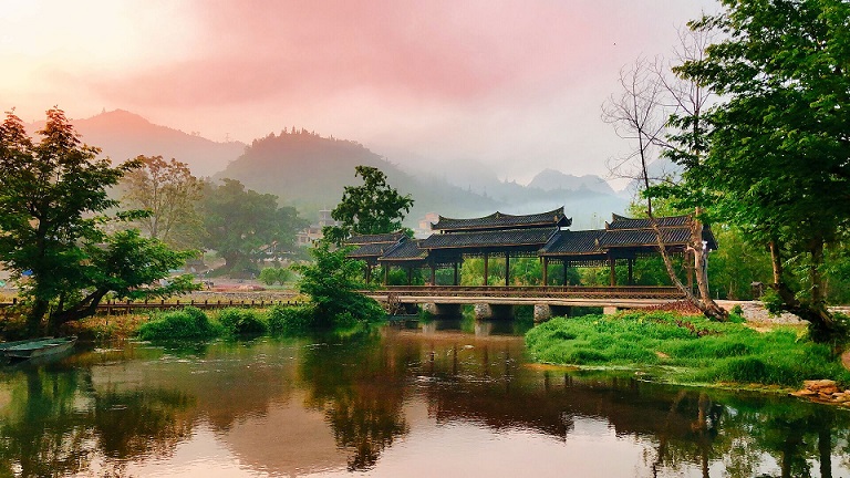小暑蟬噪熱,心靜自然涼。若要心靜,文山廣南壩美世外桃源是絕好去處。尾隨陶淵明,坐著畫舫船,穿過幽深的溶洞,伴著槳聲燈影,經(jīng)過短暫的幽暗,竟是豁然開朗,土地平曠,阡陌縱橫,屋舍儼然。撲面而來的,分不清是桃花的馥郁還是稻花的清香。緩緩流淌的,說不清是小院里的炊煙裊裊或是峰巒下的薄霧輕揚(yáng)。造物主在廣南繪就了這樣一幅水墨圖卷——壩美世外桃源。小住在這個(gè)隱秘的避世田園,沒有塵世的喧囂,心靜不思?xì)w。