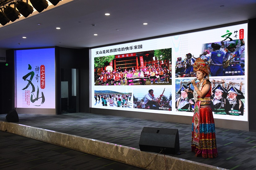 文山州文化和旅游局副局長(zhǎng)汪玲作主題推介。她向鄭州市民發(fā)出避暑邀請(qǐng)——文山海拔相對(duì)高、緯度相對(duì)低、降雨相對(duì)多,氣候濕潤(rùn),年平均氣溫20度,是人類居住康養(yǎng)的最佳居所。