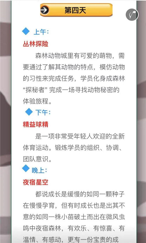 第一次參加夏令營的見聞,將是孩子感受最深的回憶,克服困難的不易,在協(xié)作中的感悟,不期而遇的驚喜和一些美麗的意外,都會成為孩子回憶里最閃亮的部分,生命的獨立成長,由第一次夏令營開啟!