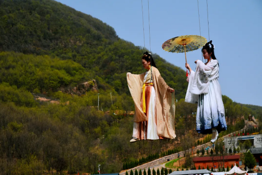 打卡驚險(xiǎn)刺激的網(wǎng)紅步步驚心橋,到喊泉調(diào)整好呼吸喊上一嗓,釋放壓抑很久的情緒。離喊泉不到一百米的距離就到了小姐姐最喜歡的打卡地—威亞飛天,去租上一套漢服和小姐妹們一起完成童年時(shí)的武俠夢(mèng)吧!