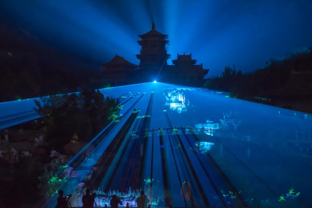 晚上8點(diǎn)15分演出正式開(kāi)始,坐于山谷的蒲團(tuán)之上,感受著清涼的山風(fēng)拂過(guò)周身,耳邊是摻雜著蟲(chóng)鳴蛙聲的天籟梵音,慢慢感受、參悟其中的禪意,那一刻,心里不僅僅是對(duì)演出的震撼,更多的是無(wú)法言明的寧?kù)o與泰然,仿佛整個(gè)人都與自然融為一體。