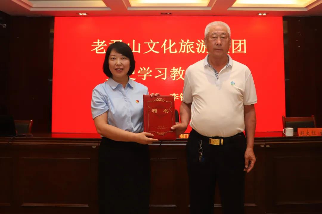 聘請中共欒川縣委黨校資深講師李銀汁同志為老君山文旅集團(tuán)文化導(dǎo)師,老君山董事局主席楊植森為其頒發(fā)聘書。