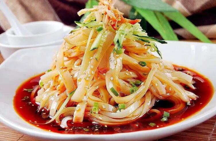 涼皮因原料、制作方法、地域不同,有熱米(面)皮、搟面皮、烙面皮、釀皮等?谖队新槔,酸甜,香辣等各種口味。