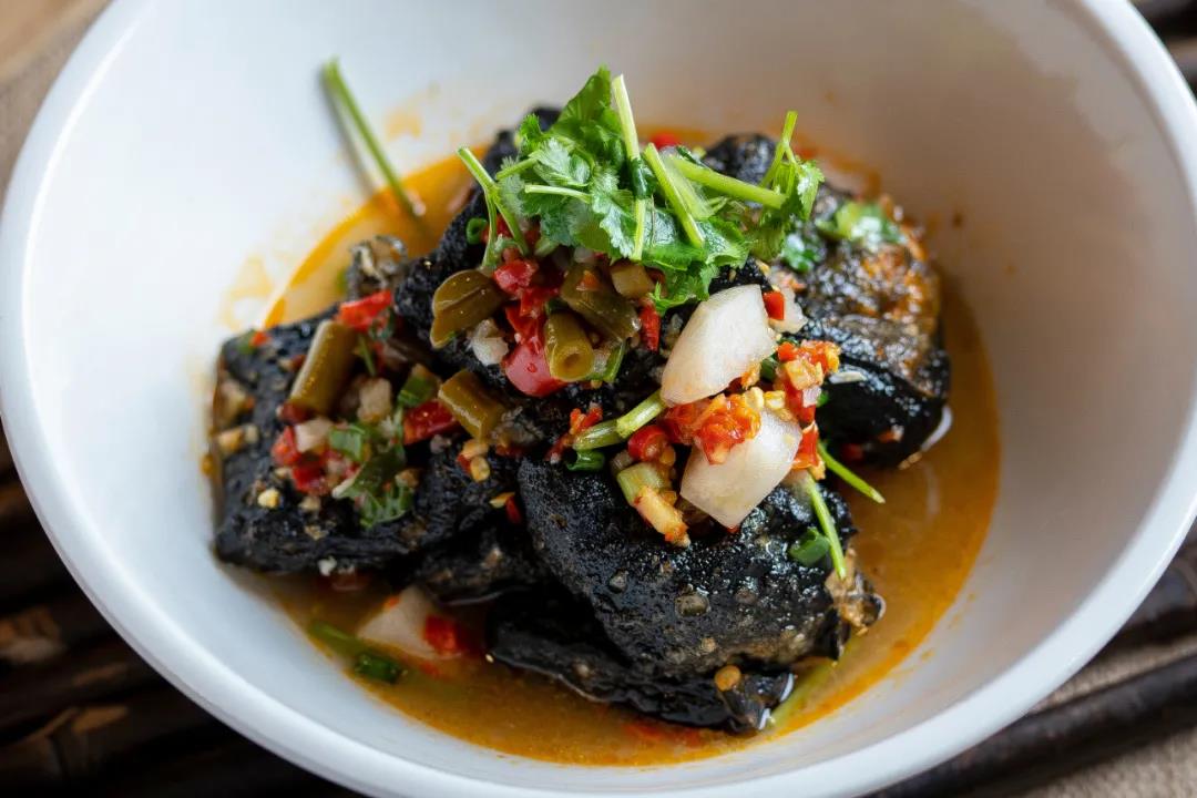 豆腐存在的歷史悠久,竹寨的西施豆腐,它的晶瑩有如白玉一般細(xì)膩溫柔,又如同剛出浴的少女,彈指可破,只可遠(yuǎn)觀而不可褻玩焉。用小勺輕輕舀起一塊嫩白的豆腐,在口中細(xì)細(xì)品嘗,豆子濃厚的醇香與其溫潤的細(xì)膩相得益彰,夢幻般的感覺。