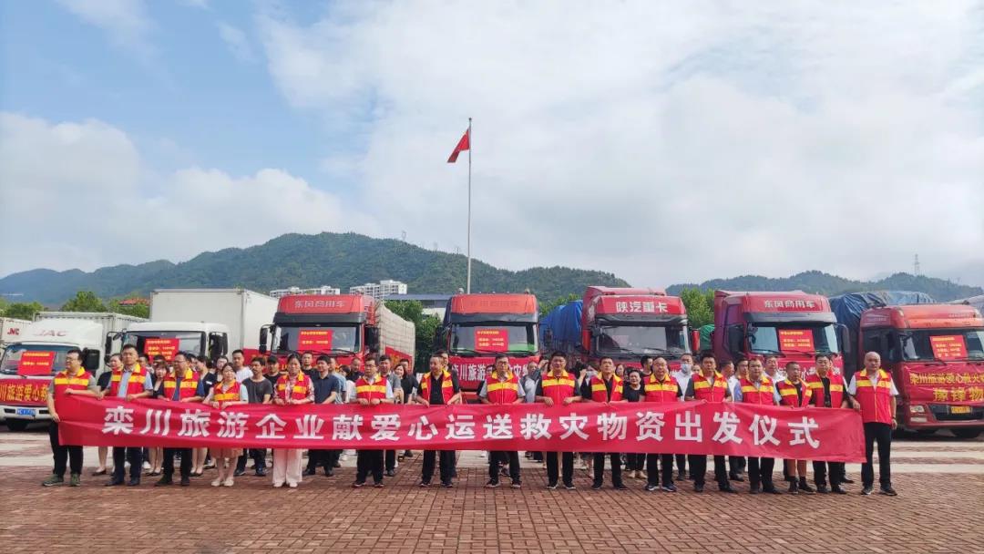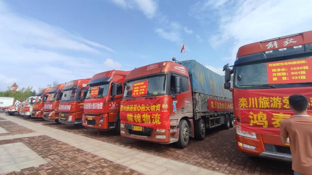 7月24日上午,共計(jì)16車(chē)欒川旅游愛(ài)心救災(zāi)物資和2輛愛(ài)心救援隊(duì)車(chē)輛,在欒川縣文化藝術(shù)中心有序集結(jié)后出發(fā)。
